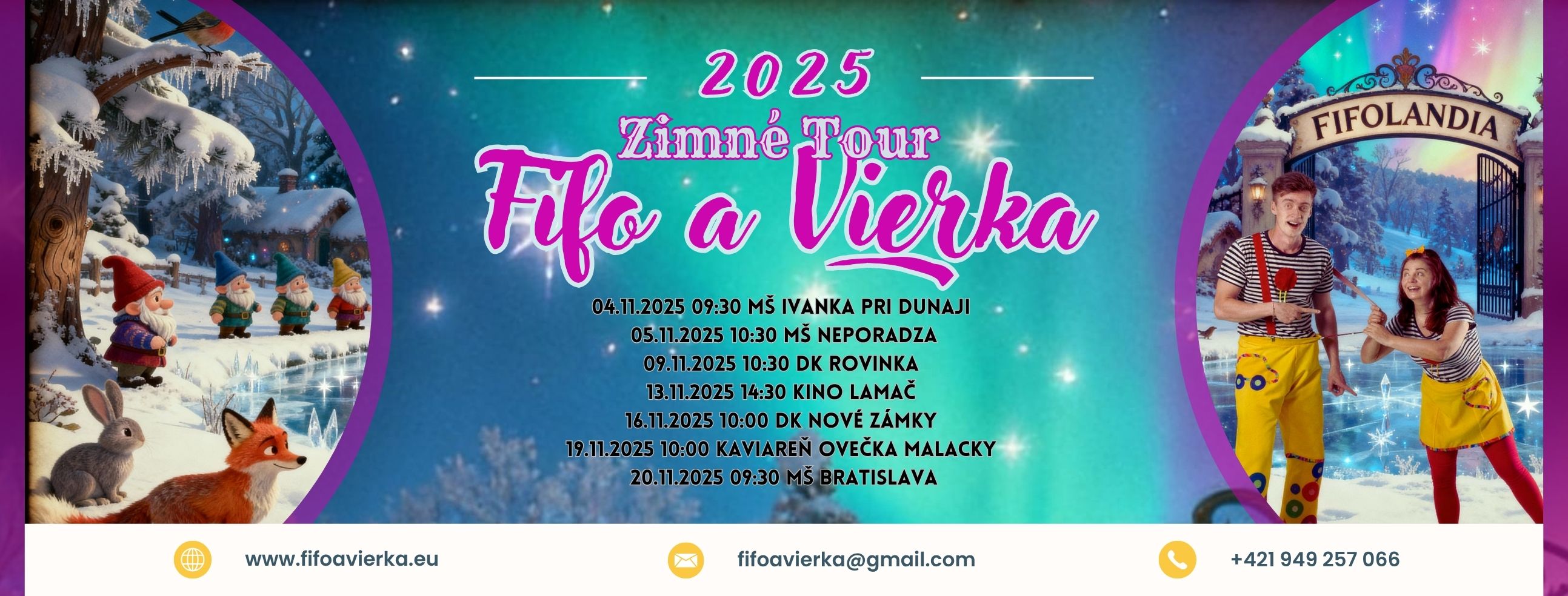 Produkujeme hlavne predstavenia interaktívneho divadla Fifo a Vierka a koncerty Viera Šusteková a hostia.